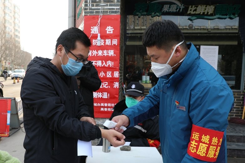 在全市(shi)復(fu)工(gong)復(fu)產工(gong)作(zuo)推(tui)進(jin)下,2月24日-3月13日,我公(gong)司主動參(can)(can)與共(gong)建共(gong)筑(zhu)單位(wei)禹香(xiang)(xiang)苑(yuan)社區(qu)(qu)(qu)聯(lian)防聯(lian)控工(gong)作(zuo),協助(zhu)社區(qu)(qu)(qu)工(gong)作(zuo)人員,對(dui)社區(qu)(qu)(qu)內所有(you)居民(min)疫(yi)情(qing)期(qi)間出(chu)(chu)入信息進(jin)行(xing)(xing)摸排(pai)建檔,為每位(wei)住戶開具小區(qu)(qu)(qu)出(chu)(chu)入通(tong)行(xing)(xing)證,通(tong)過(guo)張貼、走訪的(de)(de)(de)方式對(dui)疫(yi)情(qing)防控知識進(jin)行(xing)(xing)宣傳,與社區(qu)(qu)(qu)商家簽(qian)訂防控承諾(nuo)書等工(gong)作(zuo);協助(zhu)禹香(xiang)(xiang)苑(yuan)小區(qu)(qu)(qu)門禁管理(li),測溫、查看證件、出(chu)(chu)入登記等工(gong)作(zuo)。公(gong)司志(zhi)愿者共(gong)參(can)(can)與社區(qu)(qu)(qu)服(fu)務(wu)項目44次,參(can)(can)與人次200余人。志(zhi)愿服(fu)務(wu)中(zhong),每一位(wei)熱力(li)志(zhi)愿者都認真對(dui)待每一次的(de)(de)(de)志(zhi)愿服(fu)務(wu),不(bu)畏嚴寒、不(bu)懼(ju)疫(yi)情(qing),堅(jian)守抗疫(yi)一線,耐心講解(jie)、細心排(pai)查,以高度的(de)(de)(de)責任心守護群眾的(de)(de)(de)生(sheng)命安全,以自己的(de)(de)(de)實際行(xing)(xing)動,踐行(xing)(xing)著 “運(yun)城熱力(li)志(zhi)愿者”的(de)(de)(de)服(fu)務(wu)精神,得到禹香(xiang)(xiang)苑(yuan)社區(qu)(qu)(qu)的(de)(de)(de)充(chong)分肯(ken)定。